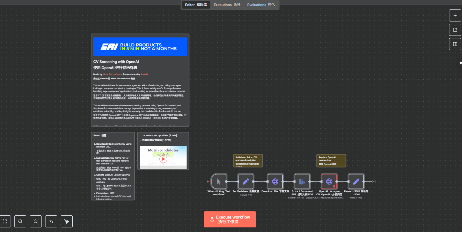 n8n文档 https://docs.n8n.io 中文文档: https://docs.n8ncn.io 官方社区(模板、社区成员) https://community.n8n.io/ 快速开始: https://n8n.io/ 界面介绍 https://n8n.akashio.com/article/n8n-ui 教学合集: https://www.darrelltw.com/n8n-tutorial-resources/#templates 零基础教程 https://www.bilibili.com/video/BV1nejbz6Eip/?spm_id_from=333.337.search-card.all.click&vd_source=d9f631f2aa422b95711dea08e6660a60 2000+模板 https://github.com/enescingoz/awesome-n8n-templates 2000+模板 https://github.com/Zie619/n8n-workflows n8n踩坑环节。 https://x.com/binggandata/status/1951798212995829996 使用n8n自动抓取天气预报并发送到微信 https://zhuanlan.zhihu.com/p/629643758 n8n+mcp+deepseek https://blog.csdn.net/m0_59235245/article/details/147950398) 视频教程 https://www.bilibili.com/video/BV11QX8YNEjU/?spm_id_from=333.337.search-card.all.click&vd_source=d9f631f2aa422b95711dea08e6660a60 mcp节点 https://github.com/nerding-io/n8n-nodes-mcp 如何将整个mcp工作流部署为mcp服务 图文教程 https://zhuanlan.zhihu.com/p/1913630305291567877 官网介绍: https://n8n.io/workflows/3770-build-your-own-n8n-workflows-mcp-server/ n8nchat自然语言编程 https://n8nchat.com 飞书表格 https://mp.weixin.qq.com/s/MIoNKpCSBYhhBjxCAaGSYg 多智能体工作流 https://mp.weixin.qq.com/s/efsB3GwZzTVH4rjW5i0iGQ 论文自动解读知识库 [https://mp.weixin.qq.com/s/YBoM7YkpHjsFl-hyaSsnOw